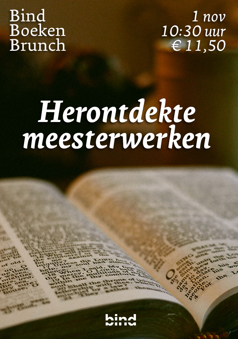 Elk tijdperk, elk land kent zijn eigen meesterwerken – maar het gros blijft voor ons volledig onopgemerkt. Sommige toegewijde vertalers en uitgevers proberen alsnog onze aandacht te vangen met juist dÃe parel waar zij zo ondersteboven van zijn. De laatste jaren zijn er gestaag ‘herontdekte’ klassiekers uitgebracht. Tijdens deze BIND Boekenbrunch kun je kennismaken met een selectie daarvan.