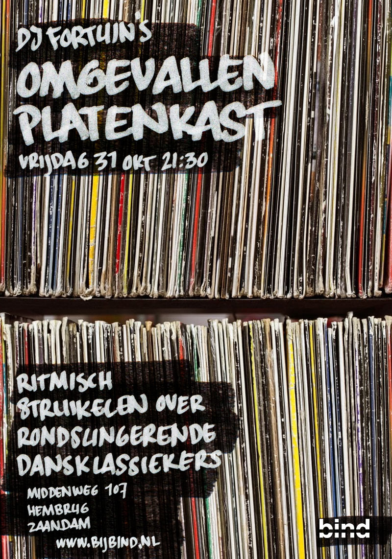 DJ Fortuin kan is weer lekker bezig. De hele kast gaat om! Kletterend vinyl over de planken bij Bind. Dat wordt weer ritmisch struikelen over rondslingerende dansklassiekers.