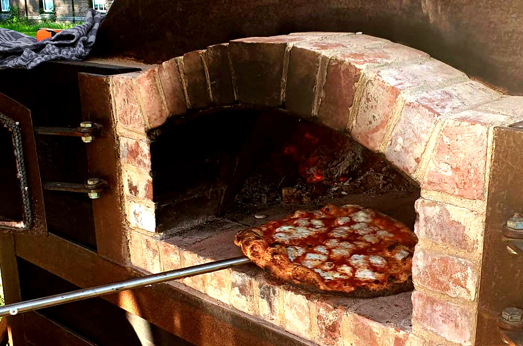 Bakker Boris stookt de oven bij Bind om pizza’s te bakken.